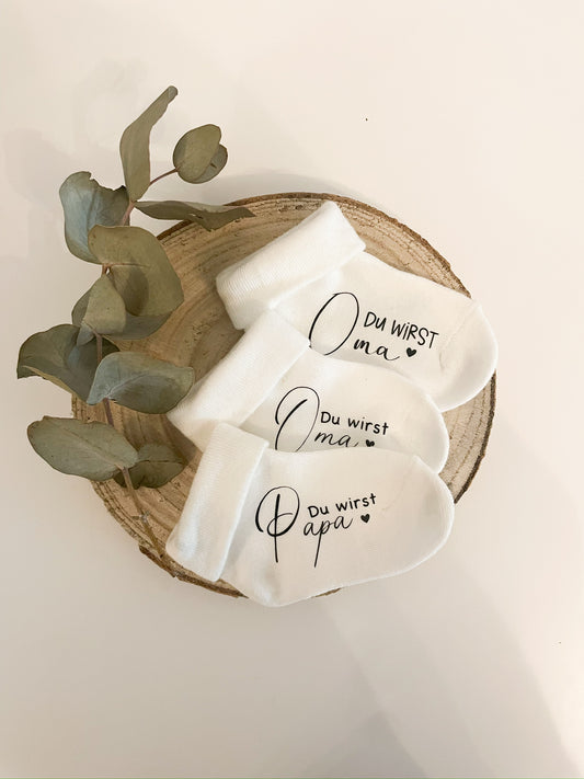 Babysocke um Schwangerschaft verkünden, Socken mit Aufdruck, Du wirst Papa, Du wirst Oma