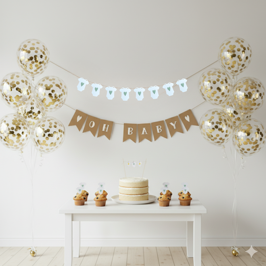 "Oh Baby" Girlande Gold Babyparty Gender Reveal Party