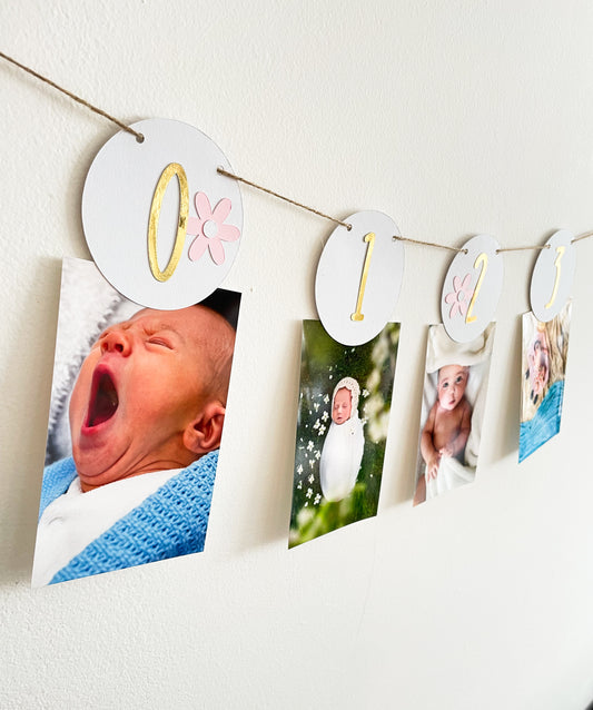 Monatsbilder Meilensteinkette Blumen - 12 Monats Girlande für Babyfotos - Geburtstagsgirlande
