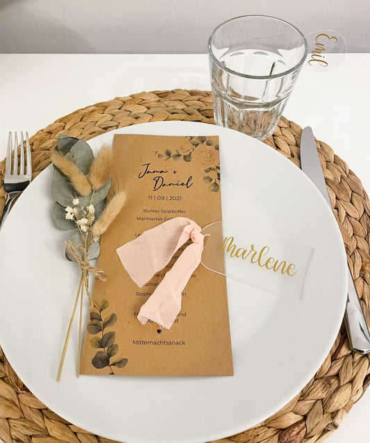 Namensschild Tischkarte Acrylglas personalisiert mit Chiffonband