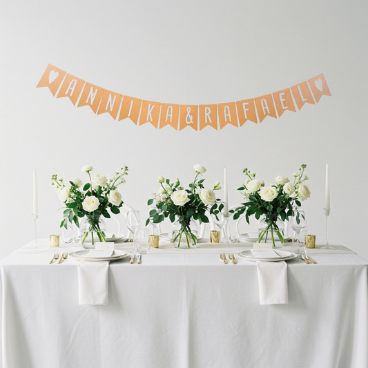 Wimpelkette "Hochzeitspaar" mit eigenen Namen für Hochzeitsdekoration