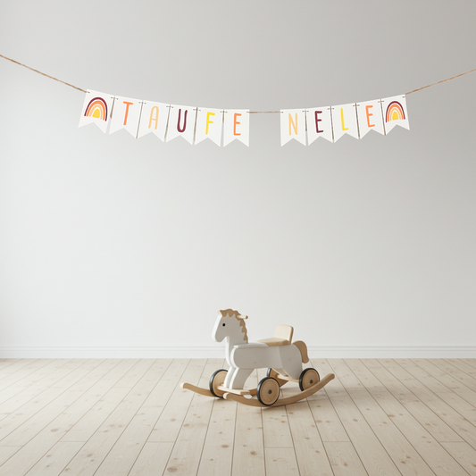 Wimpelkette Taufe Regenbogen mit eigenem Namen
