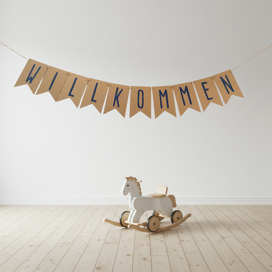 Wimpelkette "Willkommen" auf braunen Kraftpapierwimpel