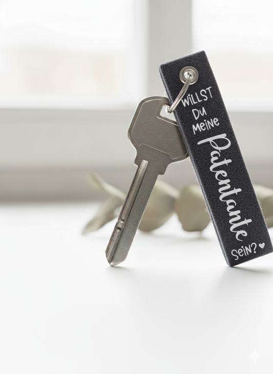 Schlüsselanhänger „Willst du meine Patentante sein?“, Patentante / Patenonkel fragen