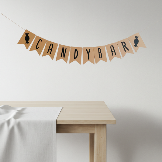 Wimpelkette mit "Wunschtext" aus braunem Kraftpapier