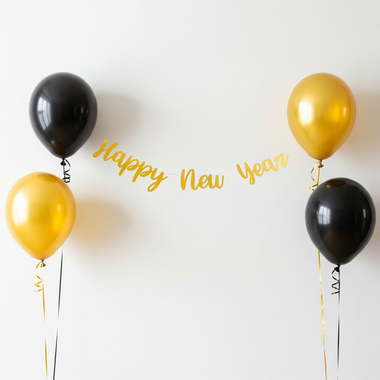 Happy New Year - Silvester Girlande | New Years Eve | Banner in Gold / Silber / Roségold