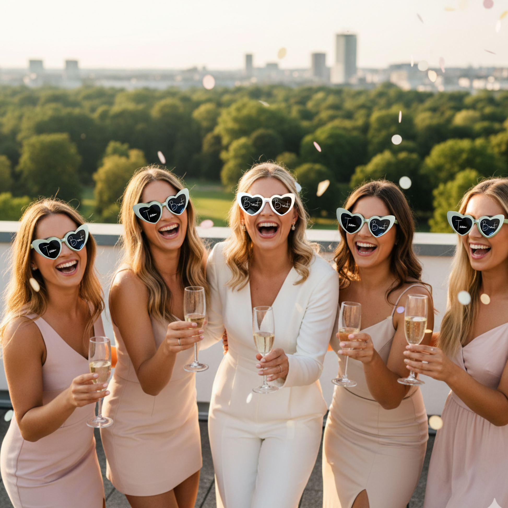 Kein Junggesellinnenabschied ohne die passende Crew-Ausstattung! Diese stylischen Retro-Sonnenbrillen in Herzform sind das perfekte Accessoire für alle Mädels vom Team Braut (oder Team Bride). Sie sorgen nicht nur für den perfekten Durchblick bei eurer JGA-Tour, sondern sind auch das absolute Highlight auf jedem Gruppenfoto.