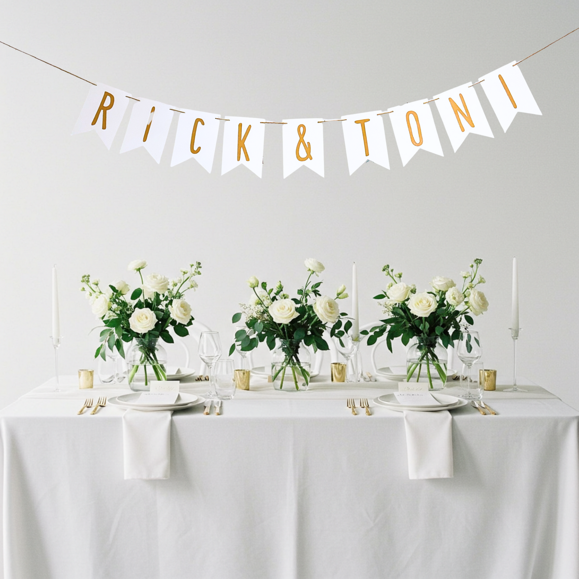 Wimpelkette "Hochzeitspaar" mit eigenen Namen für Hochzeitsdekoration